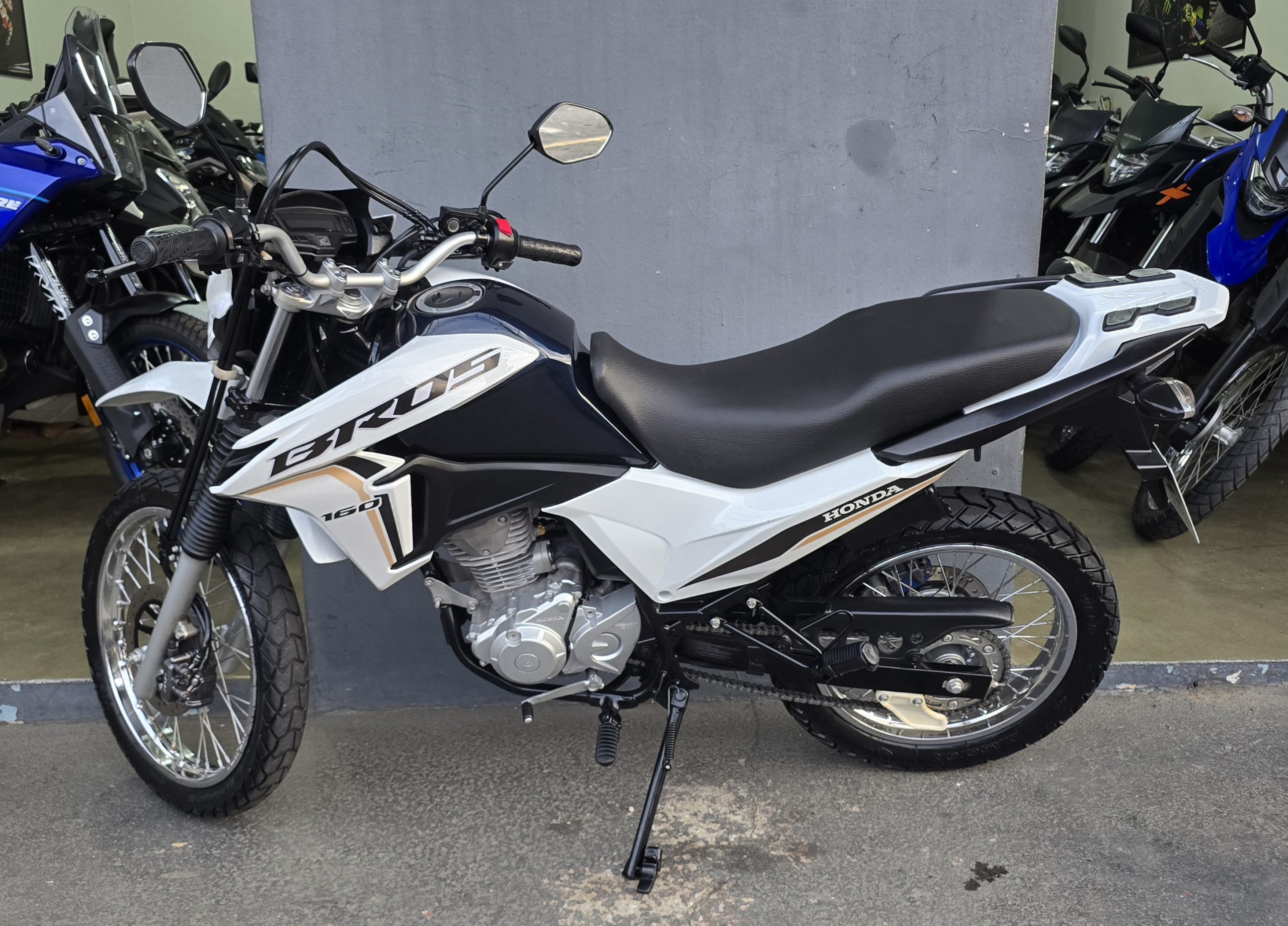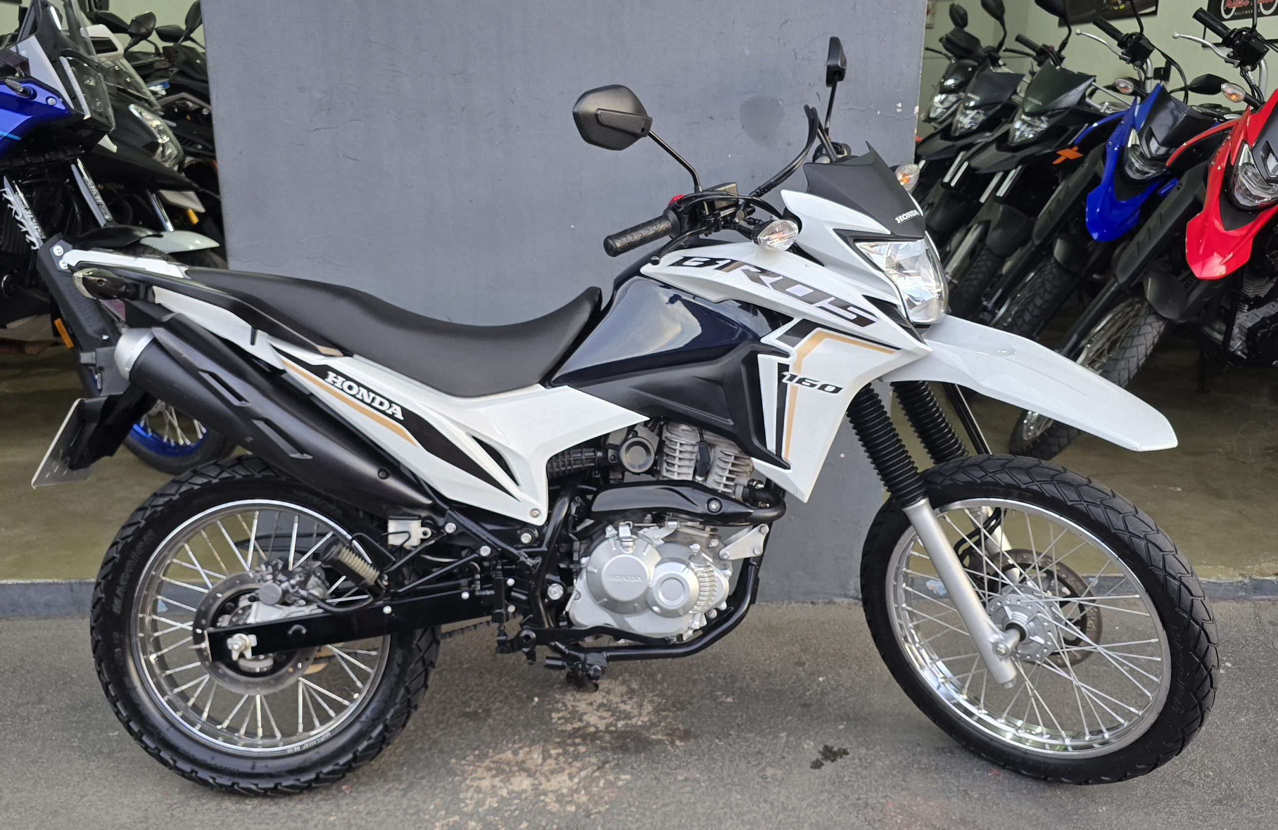 A ficha técnica da Honda NXR 160 Bros ESDD 2023 destaca-se por seu motor monocilíndrico flex de 162,7 cc e o sistema de freios a disco nas duas rodas com CBS (Combined Braking System).