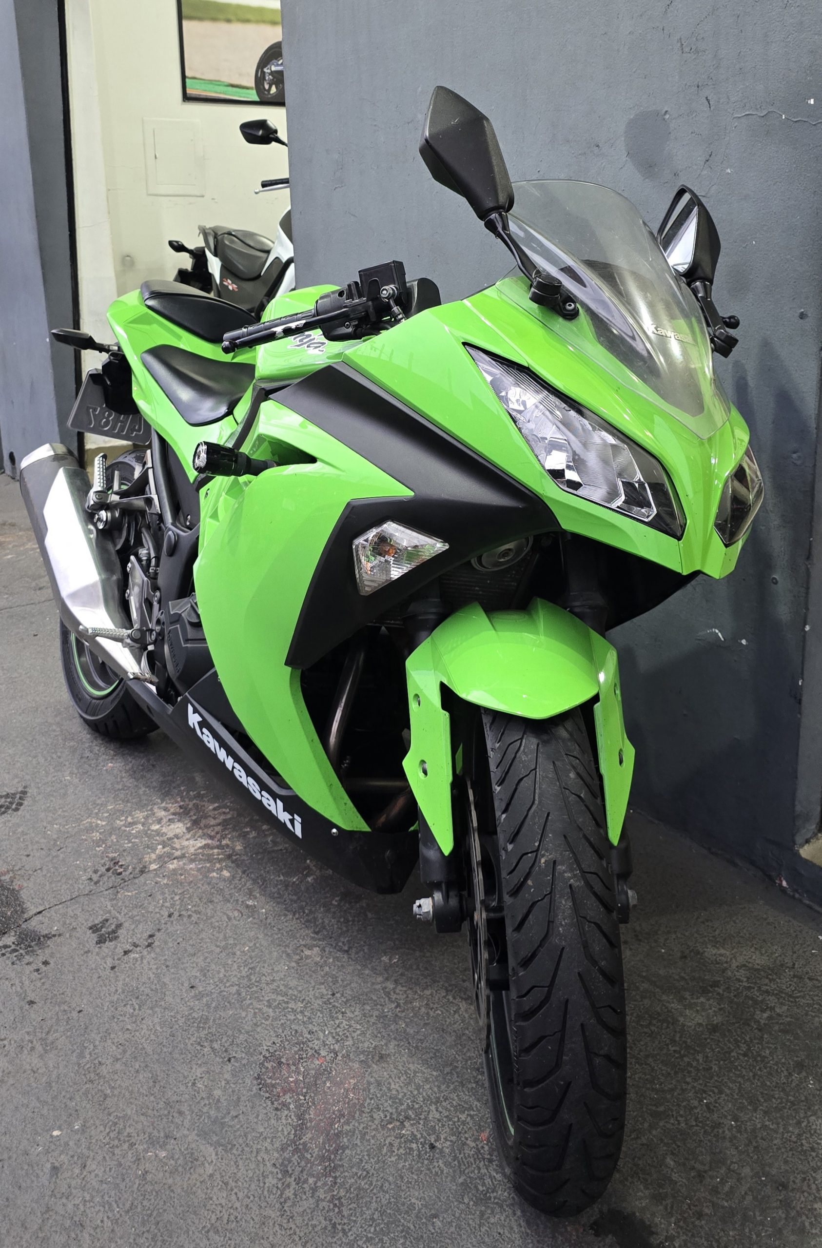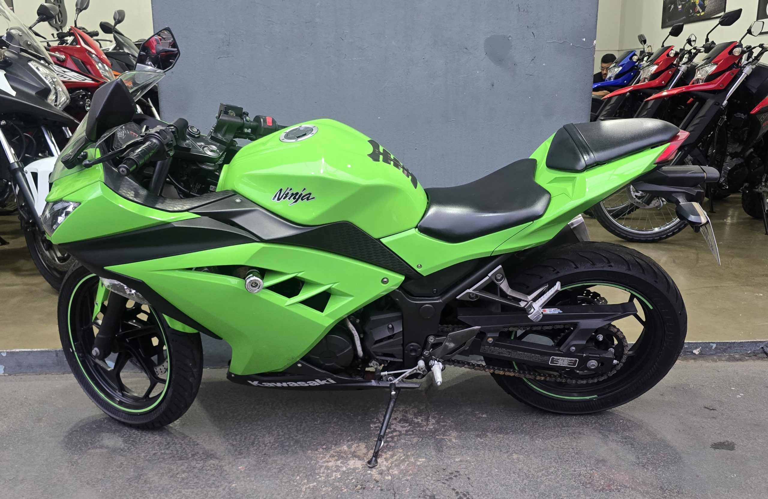 Kawasaki Ninja 300 2014 possui um motor bicilíndrico paralelo de 296 cc que entrega 39 cavalos de potência e 2,8 kgfm de torque, com refrigeração líquida e câmbio de seis marchas.